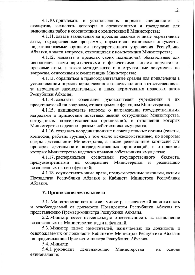 Постановление Кабинета Министров Республики Абхазия от 25.12.2019 №209 "Об утверждении "Положения о Министерстве здравоохранения и социального обеспечения Республики Абхазия""