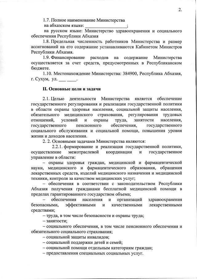 Постановление Кабинета Министров Республики Абхазия от 25.12.2019 №209 "Об утверждении "Положения о Министерстве здравоохранения и социального обеспечения Республики Абхазия""