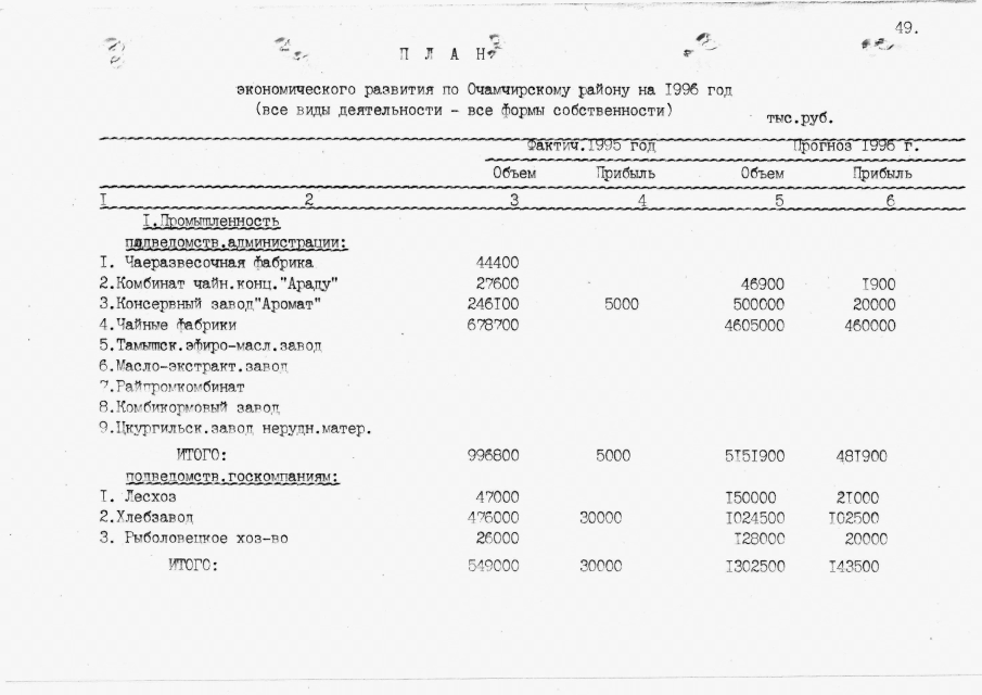 Постановление Кабинета Министров Республики Абхазия от 15.02.1996 № 1 "О плане экономического и социального развития Республики Абхазия на 1996 год и об утверждении контрольных планов городам (районам), госкомпаниям, промышленным и сельскохозяйственным предприятиям"