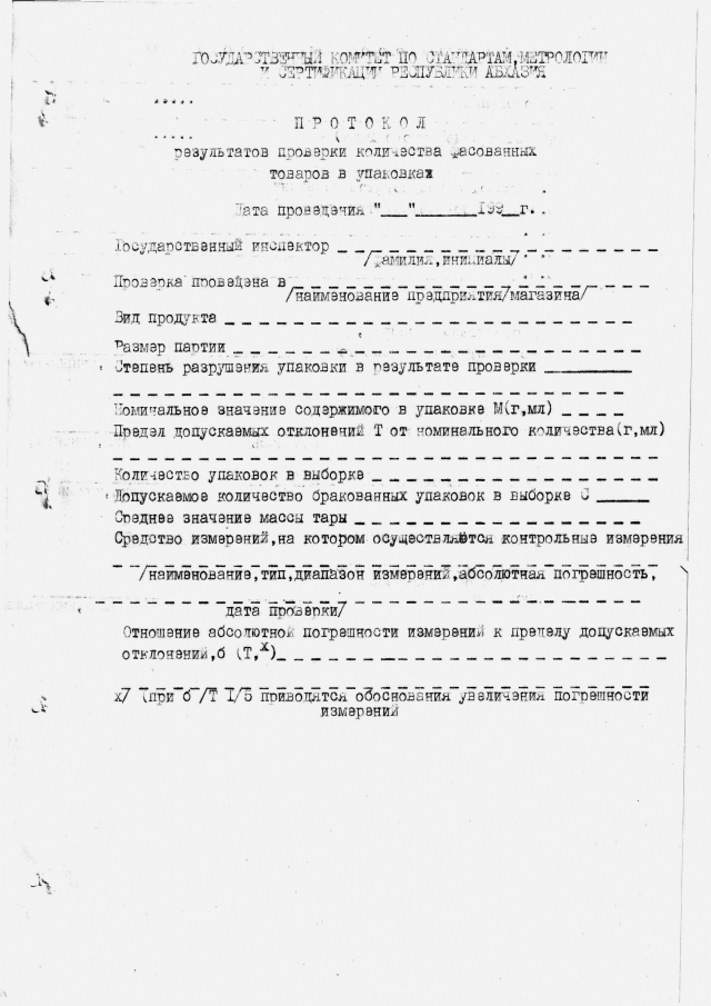Постановление Кабинета Министров Республики Абхазия от 15.02.1996 № 12 "Об утверждении "Порядка осуществления государственного метрологического надзора за количеством фасованных товаров в упаковках любого вида при их расфасовке и продаже"