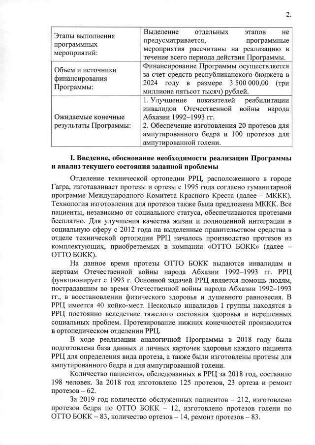 Постановление Кабинета Министров Республики Абхазия от 29.02.2024 №16 "Об утверждении ведомственной целевой программы на 2024 год <Медицинская реабилитация инвалидов Отечественной войны народа Абхазии 1992-1993 гг.>"