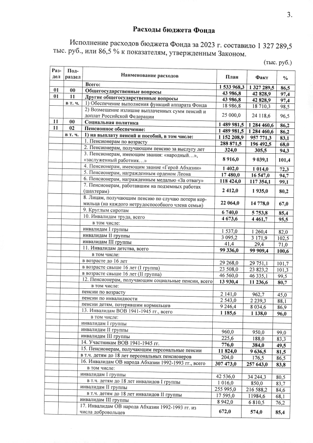 Постановление Кабинета Министров Республики Абхазия от 28.03.2024 №35 "Об исполнении бюджета Пенсионного фонда Республики Абхазия за 2023 год"