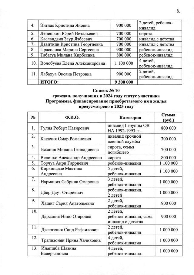 РАСПОРЯЖЕНИЕ Кабинета Министров Республики Абхазия от 14.03.2025 №54 "Отчет о выполнении программных мероприятий по государственной целевой программе <Жилище-2023 - 2025>, утвержденной Указом Президента Республики Абхазия от 29 декабря 2022 года № 373, предусмотренных к реализации в 2024 году"