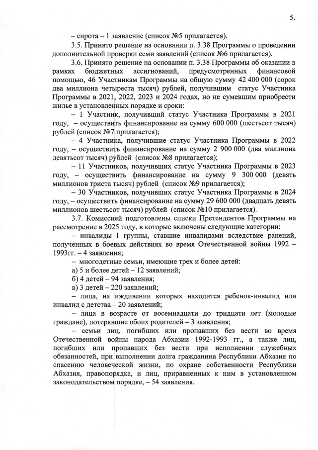 РАСПОРЯЖЕНИЕ Кабинета Министров Республики Абхазия от 14.03.2025 №54 "Отчет о выполнении программных мероприятий по государственной целевой программе <Жилище-2023 - 2025>, утвержденной Указом Президента Республики Абхазия от 29 декабря 2022 года № 373, предусмотренных к реализации в 2024 году"