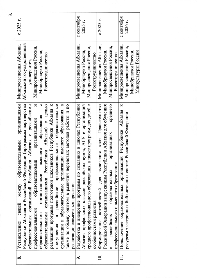 РАСПОРЯЖЕНИЕ Кабинета Министров Республики Абхазия от 12.09.2025 №265 "О согласовании проектов Рабочих карт в сфере образования, здравоохранения, социальной защиты населения, инвестиционной деятельности, коммунальной инфраструктуры, электроэнергетики, туризма и транспорта в Республике Абхазия на 2025-2027 годы"