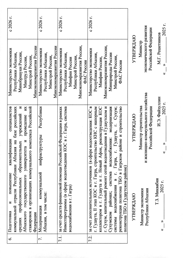 РАСПОРЯЖЕНИЕ Кабинета Министров Республики Абхазия от 12.09.2025 №265 "О согласовании проектов Рабочих карт в сфере образования, здравоохранения, социальной защиты населения, инвестиционной деятельности, коммунальной инфраструктуры, электроэнергетики, туризма и транспорта в Республике Абхазия на 2025-2027 годы"
