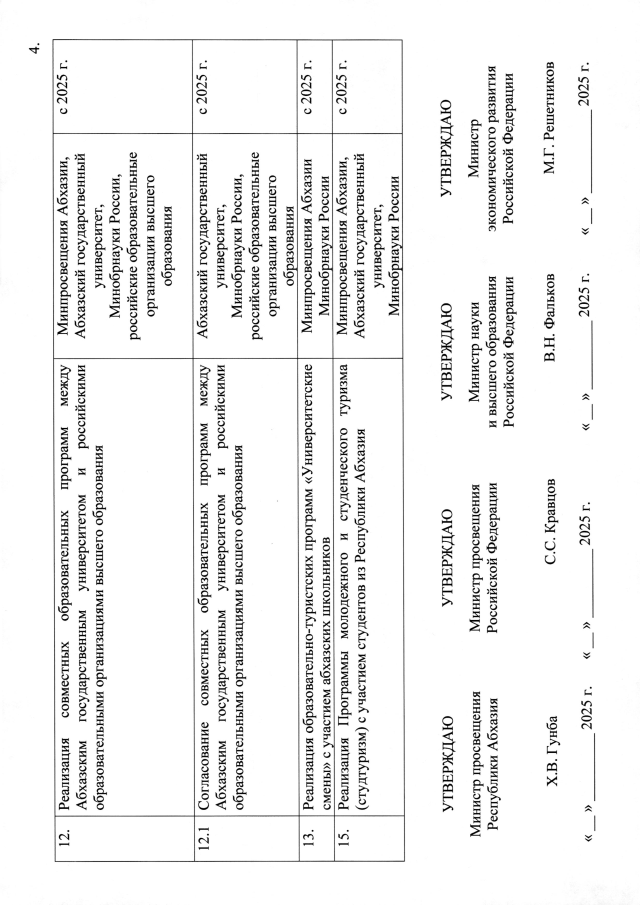 РАСПОРЯЖЕНИЕ Кабинета Министров Республики Абхазия от 12.09.2025 №265 "О согласовании проектов Рабочих карт в сфере образования, здравоохранения, социальной защиты населения, инвестиционной деятельности, коммунальной инфраструктуры, электроэнергетики, туризма и транспорта в Республике Абхазия на 2025-2027 годы"
