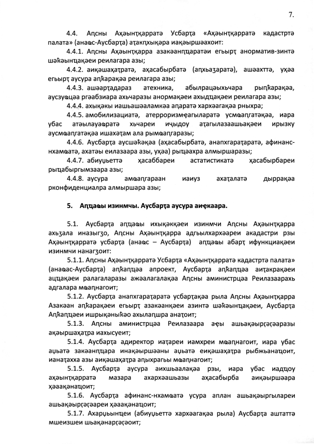 РАСПОРЯЖЕНИЕ Кабинета Министров Республики Абхазия от 01.10.2025 №282 "Об утверждении Устава государственного учреждения <Государственная кадастровая палата Республики Абхазия>"