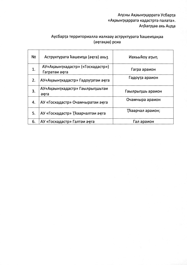 РАСПОРЯЖЕНИЕ Кабинета Министров Республики Абхазия от 01.10.2025 №282 "Об утверждении Устава государственного учреждения <Государственная кадастровая палата Республики Абхазия>"