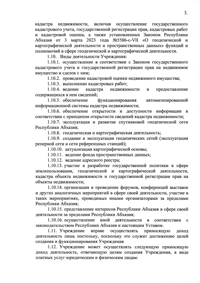 РАСПОРЯЖЕНИЕ Кабинета Министров Республики Абхазия от 01.10.2025 №282 "Об утверждении Устава государственного учреждения <Государственная кадастровая палата Республики Абхазия>"