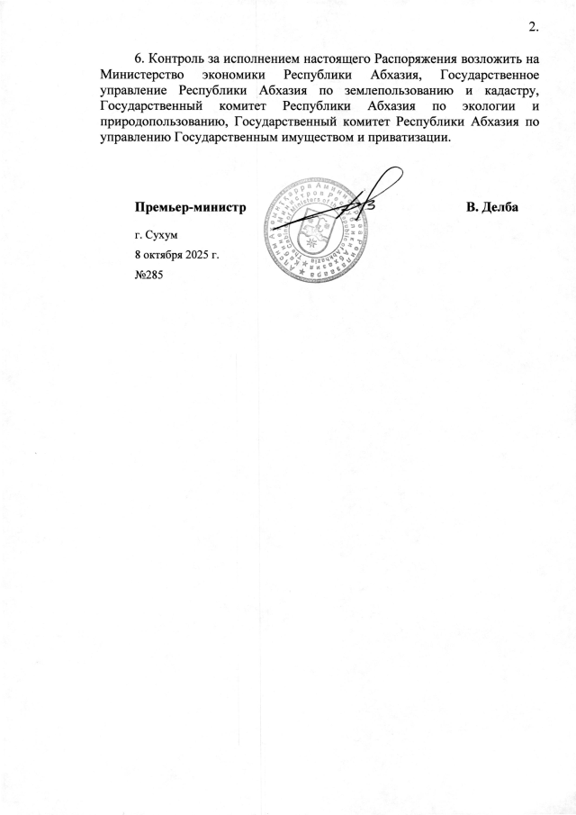 РАСПОРЯЖЕНИЕ Кабинета Министров Республики Абхазия от 08.10.2025 №286 "О предоставлении обществу с ограниченной ответственностью <Инфраструктурное развитие> права пользования участками недр для добычи подземной питьевой воды на территории аэровокзального комплекса Международного аэропорта <Сухум> им. В. Г. Ардзинба в с. Бабышира Гулрыпшского района"