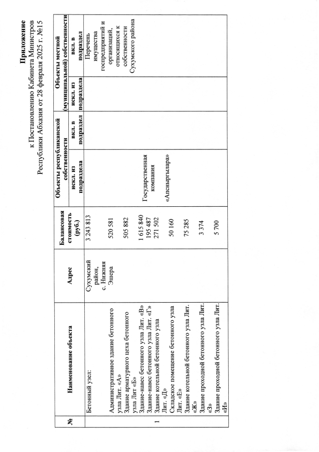 Постановление Кабинета Министров Республики Абхазия от 28.02.2025 №15 "О внесении изменений в Постановление Кабинета Министров Республики Абхазия от 6 июня 2002 года № 117 <О порядке оформления разграничения государственной собственности и формирования Реестра собственности> и о передаче административных помещений"