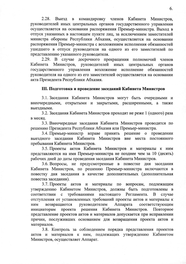 Постановление Кабинета Министров Республики Абхазия от 28.02.2025 №16 "Об утверждении Порядка проведения заседаний Кабинета Министров (Правительства) Республики Абхазия"