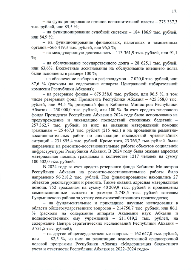 Постановление Кабинета Министров Республики Абхазия от 14.03.2025 №21 "Об исполнении республиканского бюджета за 2024 год"