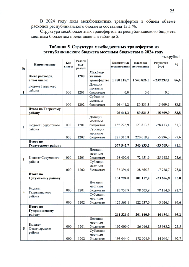 Постановление Кабинета Министров Республики Абхазия от 14.03.2025 №21 "Об исполнении республиканского бюджета за 2024 год"