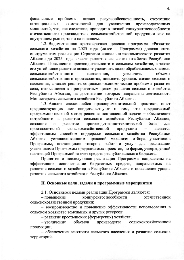 Постановление Кабинета Министров Республики Абхазия от 14.03.2025 №24 "б утверждении ведомственной краткосрочной целевой программы <Развитие сельского хозяйства на 2025 год>"