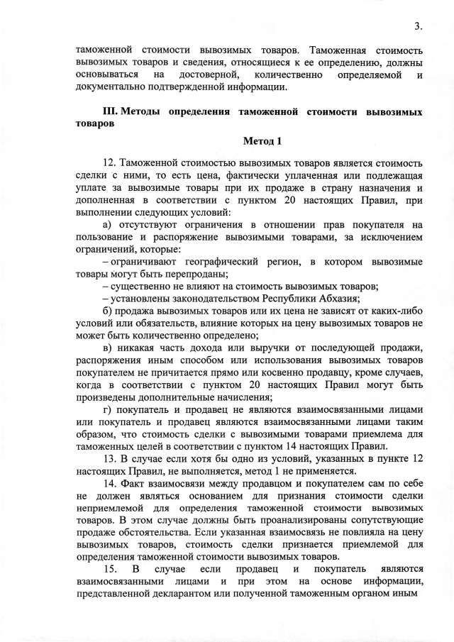 Постановление Кабинета Министров Республики Абхазия от 14.03.2025 №30 "Об утверждении Правил определения таможенной стоимости товаров, вывозимых с таможенной территории Республики Абхазия"
