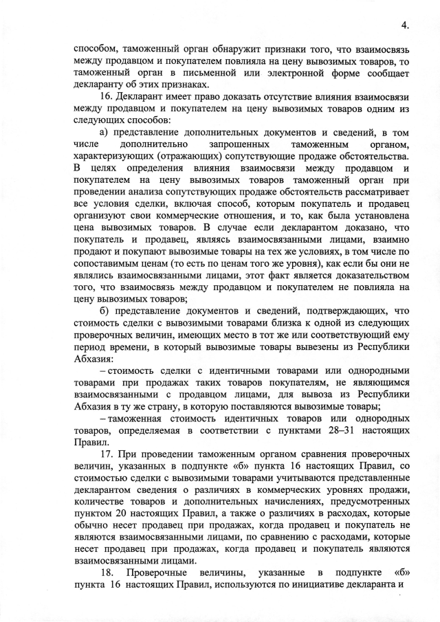 Постановление Кабинета Министров Республики Абхазия от 14.03.2025 №30 "Об утверждении Правил определения таможенной стоимости товаров, вывозимых с таможенной территории Республики Абхазия"