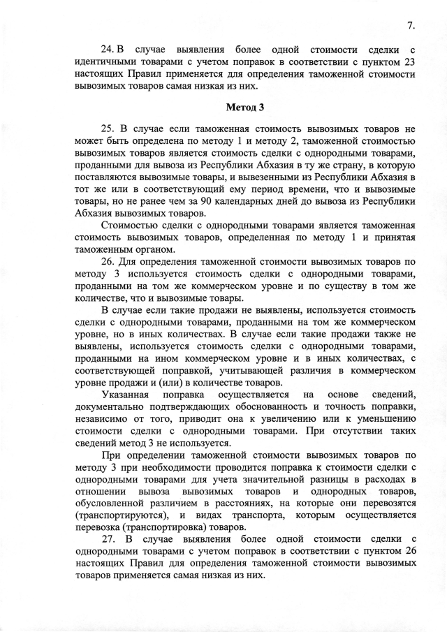 Постановление Кабинета Министров Республики Абхазия от 14.03.2025 №30 "Об утверждении Правил определения таможенной стоимости товаров, вывозимых с таможенной территории Республики Абхазия"