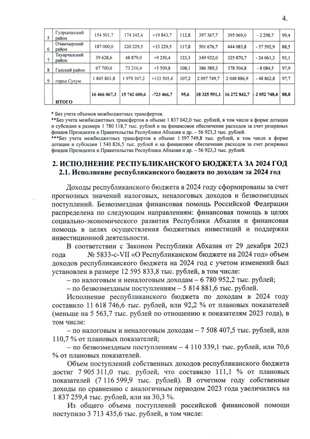 Постановление Кабинета Министров Республики Абхазия от 14.03.2025 №21 "Об исполнении республиканского бюджета за 2024 год"