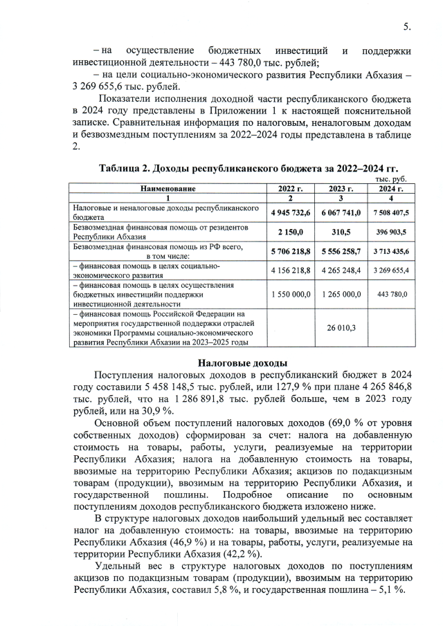 Постановление Кабинета Министров Республики Абхазия от 14.03.2025 №21 "Об исполнении республиканского бюджета за 2024 год"