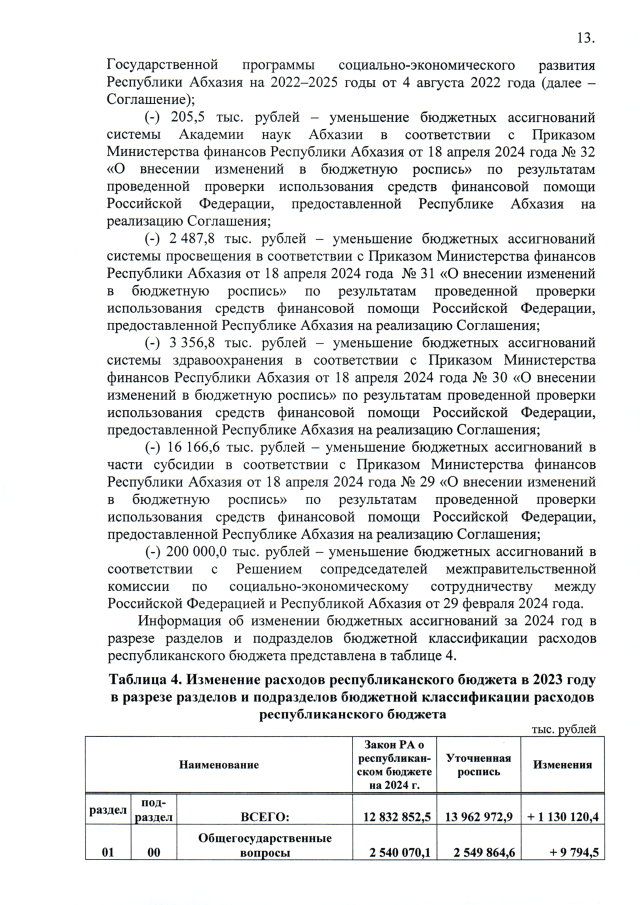 Постановление Кабинета Министров Республики Абхазия от 14.03.2025 №21 "Об исполнении республиканского бюджета за 2024 год"