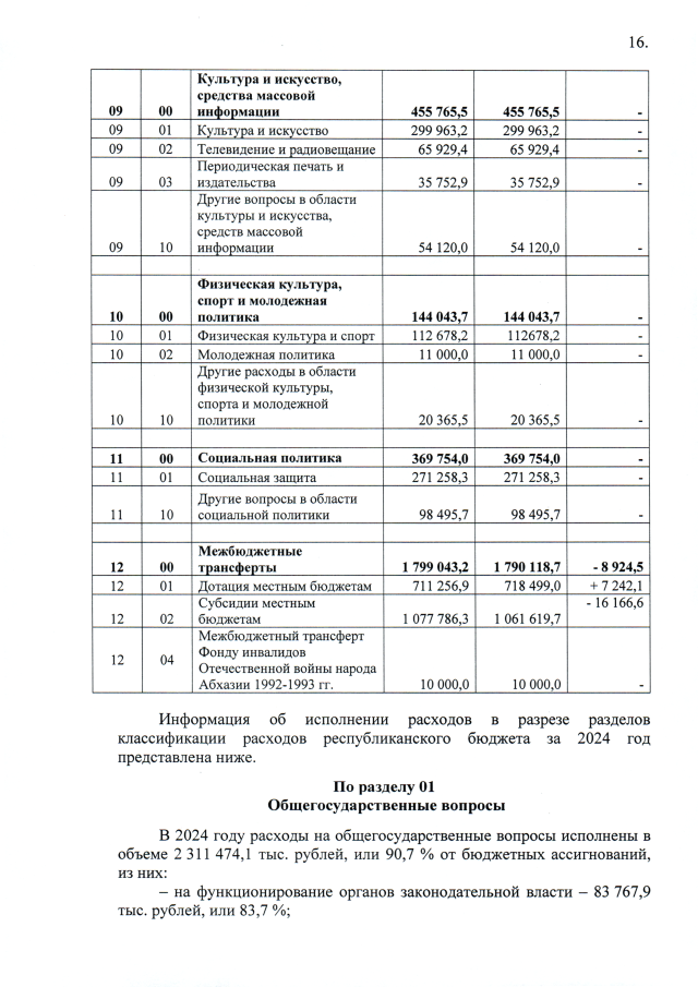 Постановление Кабинета Министров Республики Абхазия от 14.03.2025 №21 "Об исполнении республиканского бюджета за 2024 год"