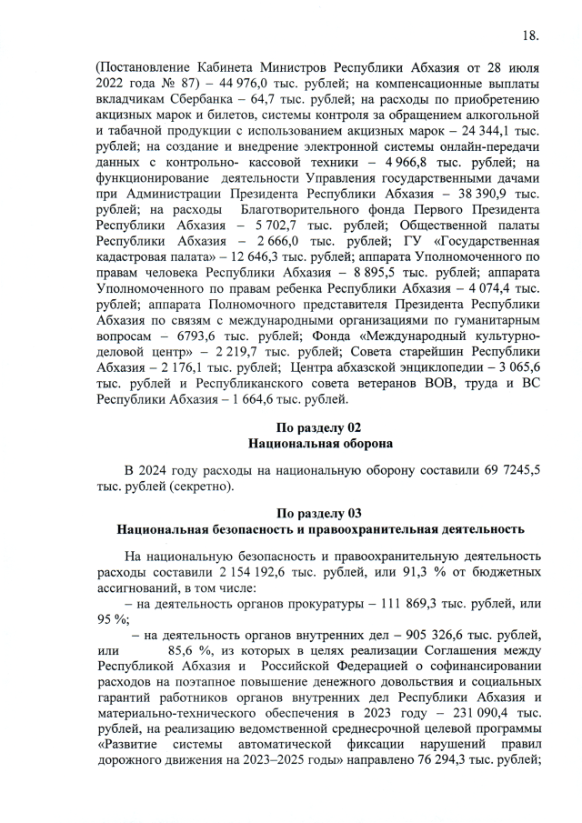 Постановление Кабинета Министров Республики Абхазия от 14.03.2025 №21 "Об исполнении республиканского бюджета за 2024 год"