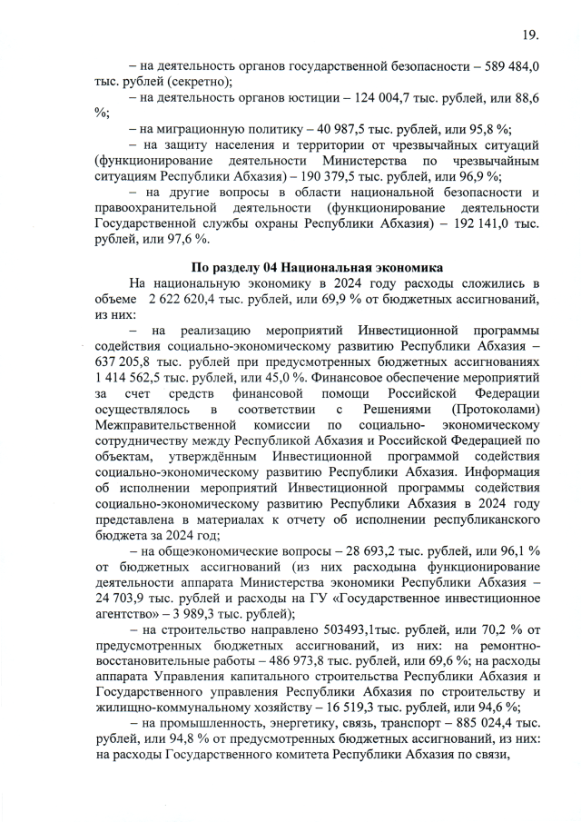 Постановление Кабинета Министров Республики Абхазия от 14.03.2025 №21 "Об исполнении республиканского бюджета за 2024 год"