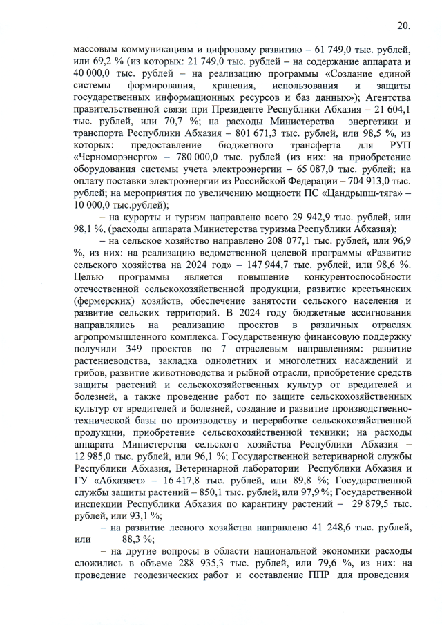 Постановление Кабинета Министров Республики Абхазия от 14.03.2025 №21 "Об исполнении республиканского бюджета за 2024 год"