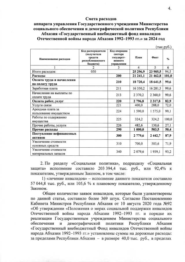 Постановление Кабинета Министров Республики Абхазия от 21.03.2025 №62 "Об исполнении бюджета Государственного внебюджетного фонда инвалидов Отечественной войны народа Абхазии 1992-1993 гг. за 2024 год"