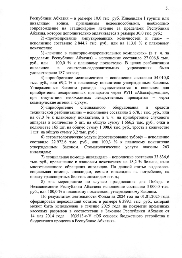 Постановление Кабинета Министров Республики Абхазия от 21.03.2025 №62 "Об исполнении бюджета Государственного внебюджетного фонда инвалидов Отечественной войны народа Абхазии 1992-1993 гг. за 2024 год"