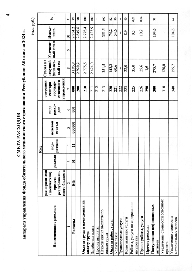 Постановление Кабинета Министров Республики Абхазия от 21.03.2025 №63 "Об исполнении бюджета Фонда обязательного медицинского страхования Республики Абхазия за 2024 год"