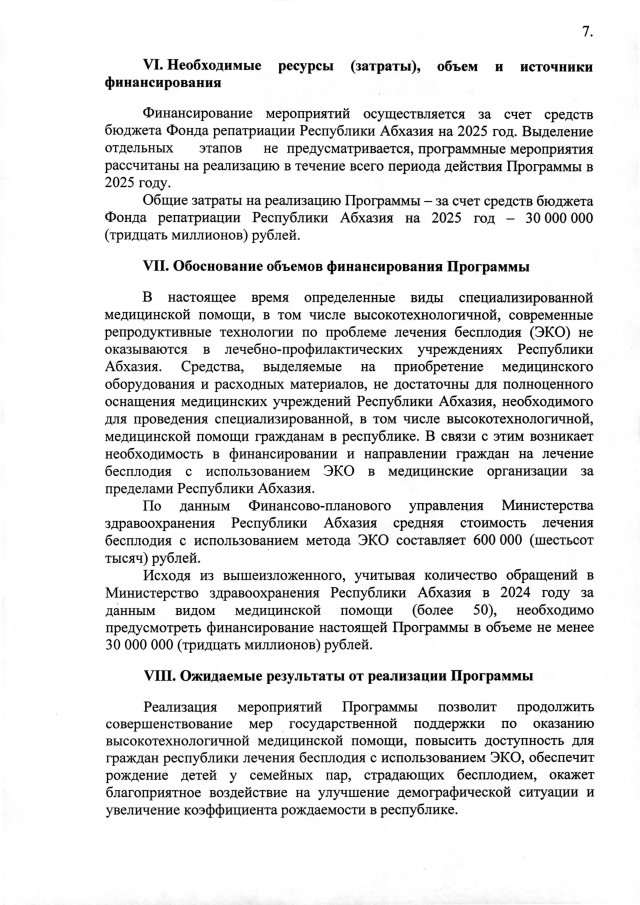 Постановление Кабинета Министров Республики Абхазия от 21.03.2025 №67 "Об утверждении межведомственной целевой программы на 2025 год <Лечение бесплодия с использованием метода экстракорпорального оплодотворения>"