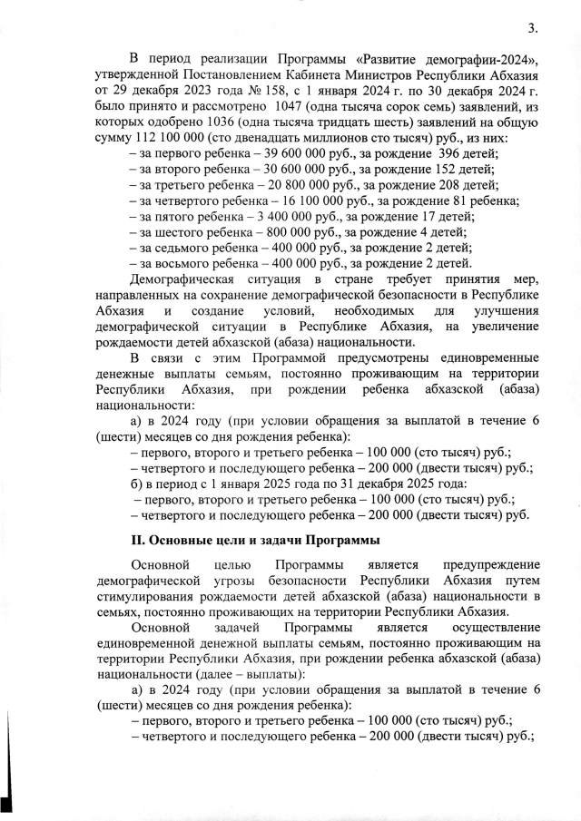 Постановление Кабинета Министров Республики Абхазия от 21.03.2025 №68 "Об утверждении межведомственной целевой программы на 2025 год <Развитие демографии>"