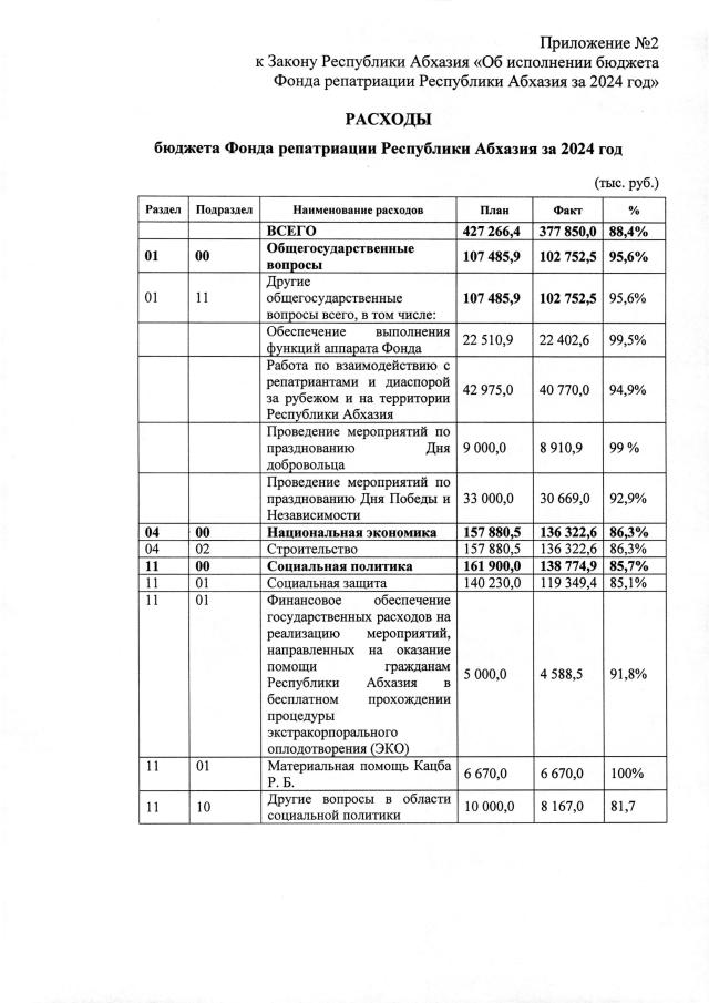 Постановление Кабинета Министров Республики Абхазия от 21.03.2025 №71 "О проекте Закона Республики Абхазия <Об исполнении бюджета Фонда репатриации Республики Абхазия за 2024 год>>"