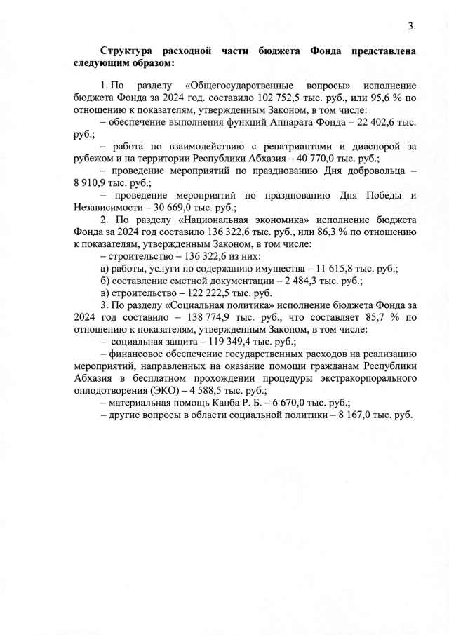 Постановление Кабинета Министров Республики Абхазия от 21.03.2025 №71 "О проекте Закона Республики Абхазия <Об исполнении бюджета Фонда репатриации Республики Абхазия за 2024 год>>"