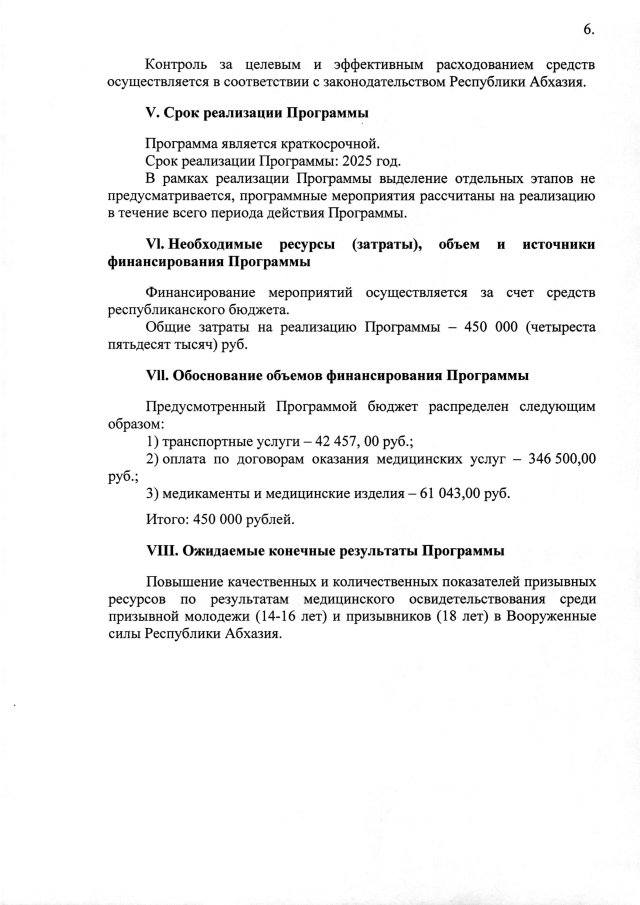 Постановление Кабинета Министров Республики Абхазия от 25.03.2025 №72 "Об утверждении ведомственной целевой программы на 2025 год <Медицинское обеспечение подготовки призывной молодежи к службе в Вооруженных силах Республики Абхазия>"