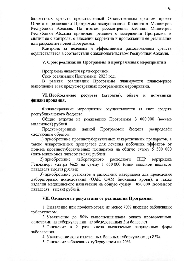 Постановление Кабинета Министров Республики Абхазия от 25.03.2025 №75 "Об утверждении ведомственной целевой программы на 2025 год <Совершенствование противотуберкулезной помощи населению Республики Абхазия>"