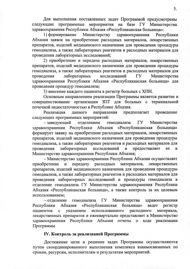 Постановление Кабинета Министров Республики Абхазия от 25.03.2025 №73 "Об утверждении ведомственной целевой программы на 2025 год <Развитие и совершенствование организации заместительной почечной терапии для больных с терминальной почечной недостаточностью в Республике Абхазия>"