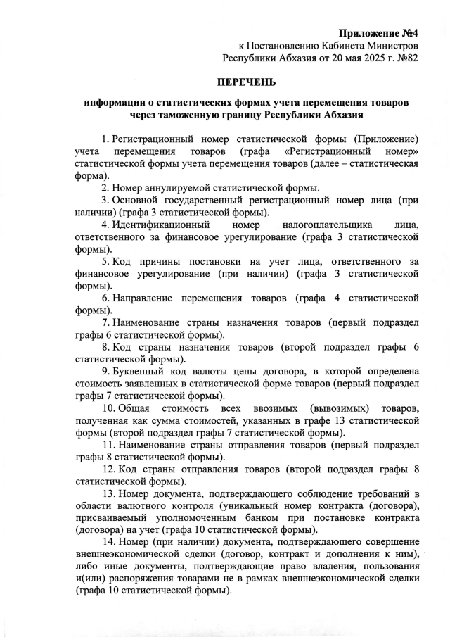 Постановление Кабинета Министров Республики Абхазия от 20.05.2025 №82 "О реализации ряда положений Закона Республики Абхазия от 7 августа 2024 года №5993-c-VII <О валютном регулировании и валютном контроле>"