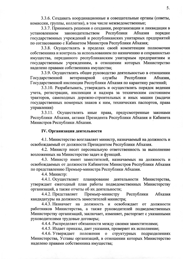 Постановление Кабинета Министров Республики Абхазия от 20.05.2025 №84 "Об утверждении положения о Министерстве сельского хозяйства Республики Абхазия"