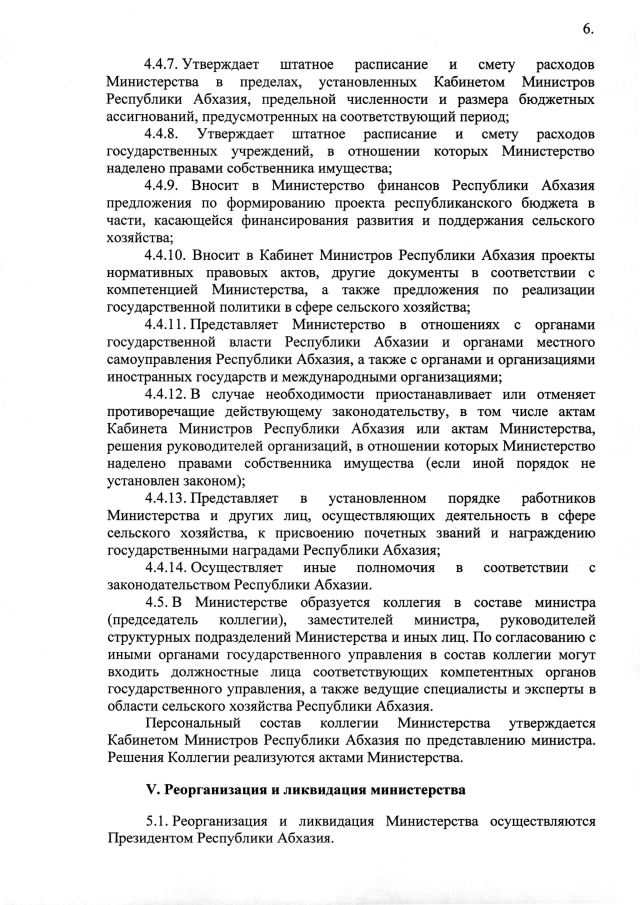 Постановление Кабинета Министров Республики Абхазия от 20.05.2025 №84 "Об утверждении положения о Министерстве сельского хозяйства Республики Абхазия"
