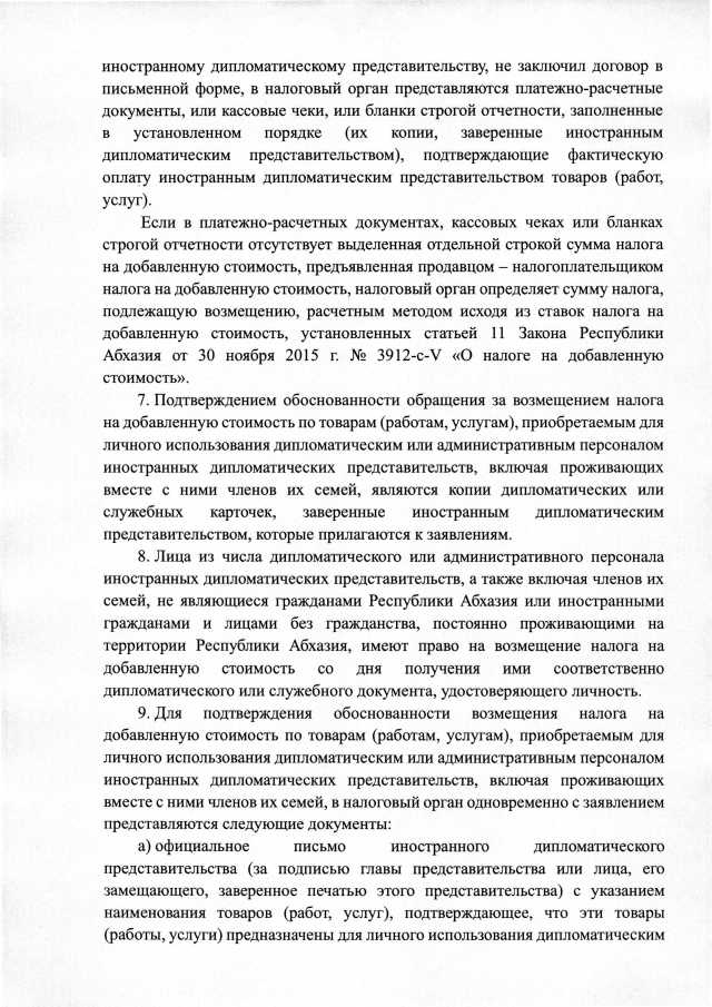 Постановление Кабинета Министров Республики Абхазия от 20.05.2025 №93 "О возмещении налога на добавленную стоимость при реализации товаров (работ, услуг), предназначенных для официального пользования иностранных дипломатических представительств,а также для личного пользования дипломатического и административного персонала этих представительств,включая членов их семей"