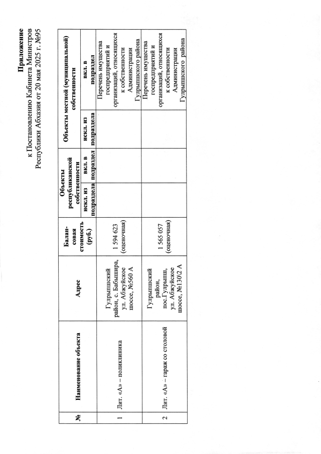 Постановление Кабинета Министров Республики Абхазия от 20.05.2025 №95 "О внесении изменений в Постановление Кабинета Министров Республики Абхазия от 6 июня 2002 года №117 <О порядке оформления разграничения государственной собственности и формирования Реестра собственности>"