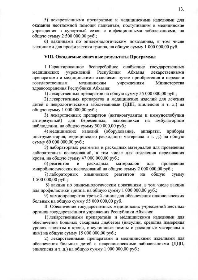 Постановление Кабинета Министров Республики Абхазия от 17.06.2025 №105 "Об утверждении ведомственной целевой программы на 2025 год <Централизованное приобретение лекарственных препаратов и медицинских изделий для обеспечения государственных медицинских учреждений Республики Абхазия>"