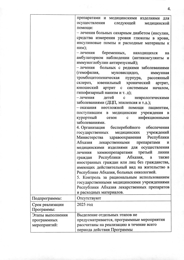 Постановление Кабинета Министров Республики Абхазия от 17.06.2025 №105 "Об утверждении ведомственной целевой программы на 2025 год <Централизованное приобретение лекарственных препаратов и медицинских изделий для обеспечения государственных медицинских учреждений Республики Абхазия>"