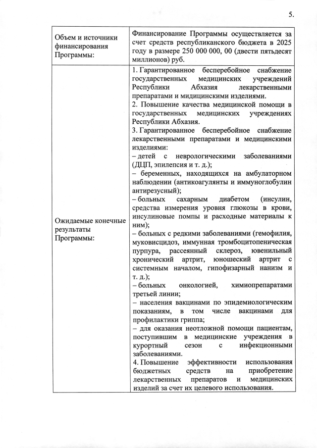 Постановление Кабинета Министров Республики Абхазия от 17.06.2025 №105 "Об утверждении ведомственной целевой программы на 2025 год <Централизованное приобретение лекарственных препаратов и медицинских изделий для обеспечения государственных медицинских учреждений Республики Абхазия>"