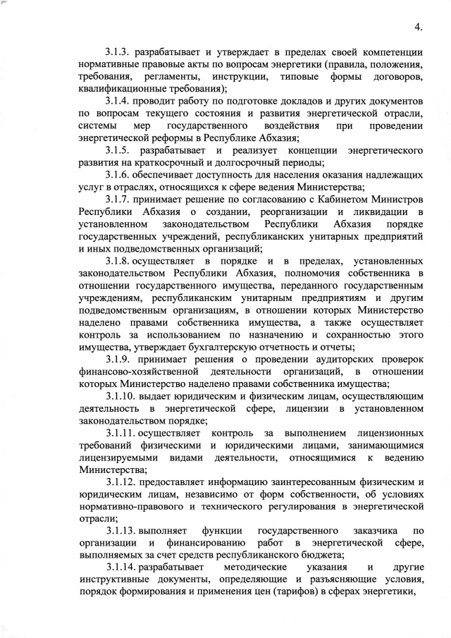 Постановление Кабинета Министров Республики Абхазия от 26.06.2025 №112 "Об утверждении Положения о Министерстве энергетики Республики Абхазия"