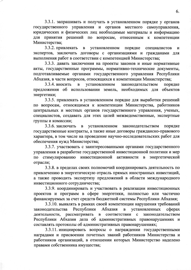 Постановление Кабинета Министров Республики Абхазия от 26.06.2025 №112 "Об утверждении Положения о Министерстве энергетики Республики Абхазия"